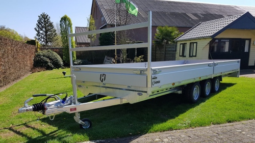 Assortiment » Aanhangwagens » Henra Plateauwagens tridemasser 553cm lang » Henra Plateauwagen 553x202cm 3500kg geremd Paraboolgeveerde assen