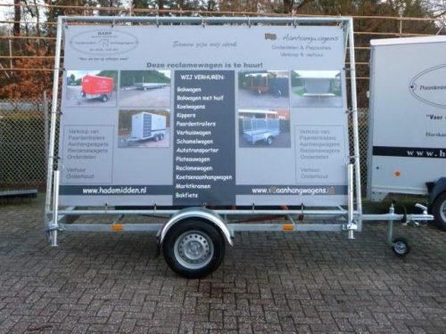 Onze reclamewagen is 3 x 2 en te gebruiken voor banner van 2.80 x 1.80